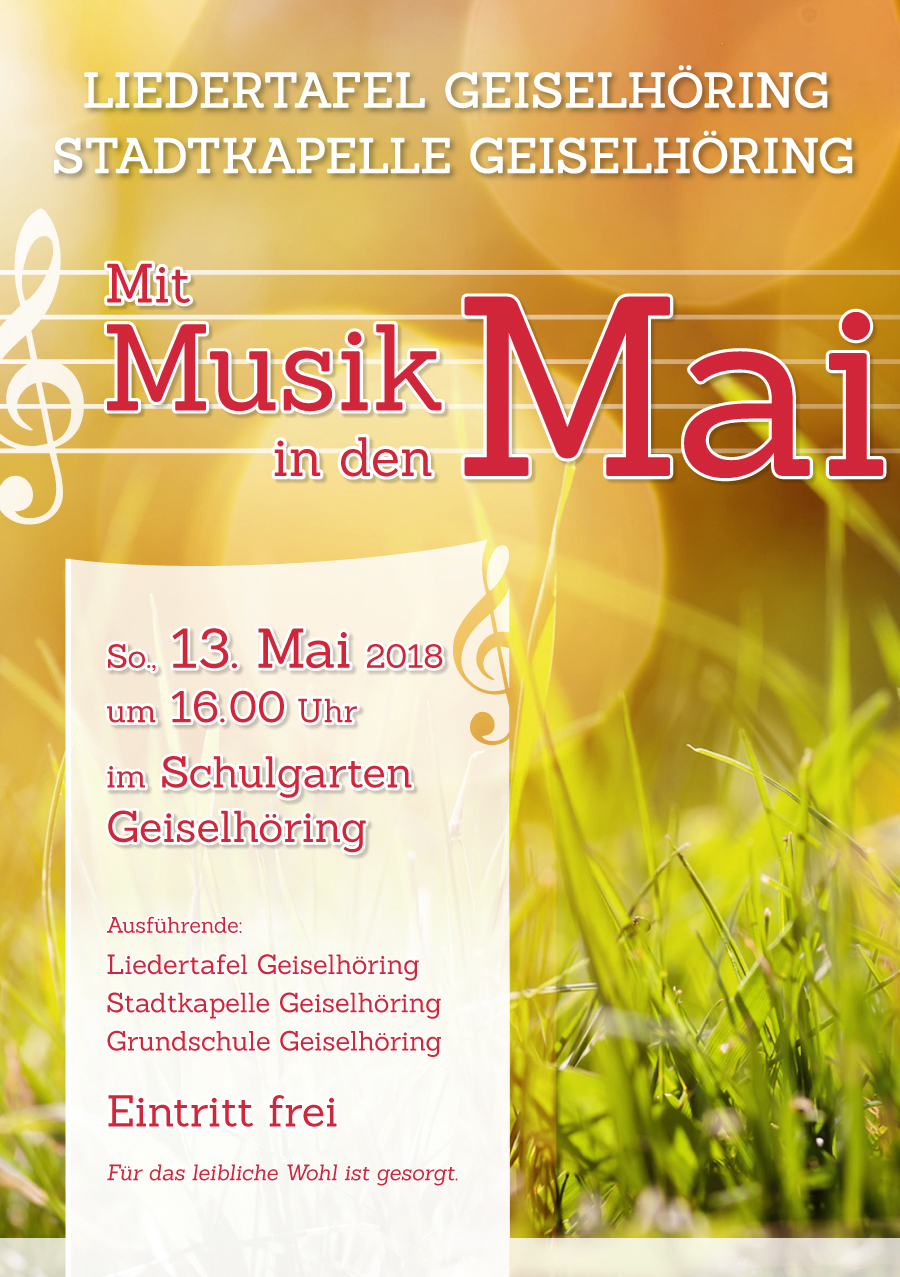 Seit einigen Jahren schon veranstalten die Liedertafel und die Stadtkapelle Geiselhöring im Frühjahr ein gemeinsames Konzert unter dem Titel „Mit Musik in den Mai“ im Garten der Grund- und Mittelschule. Während es im vergangenen Jahr wegen des ungünstigen Wetters kurzfristig in die Labertalhalle verlegt werden musste, hatte man dieses Jahr großes Glück und die Veranstaltung konnte im besonderen Ambiente des Schulgartens durchgeführt werden.