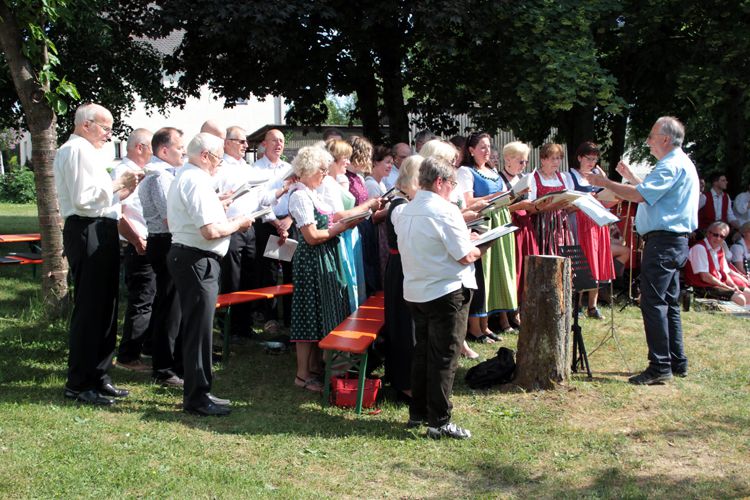 Noch einmal waren zwei Lieder im Dialekt zu hören. „Geiselhöring is a scheene Stadt“ sang die Klasse 4b, bevor dann von der Liedertafel „Hintn bei der Stadeltür’“ erklang. Das Volkslied „Wenn alle Brünnlein fließen“ – von einem früheren Jugendpfarrer immer scherzhaft „Wasserleitungsmarsch“ genannt – stand dann auf dem Programm.